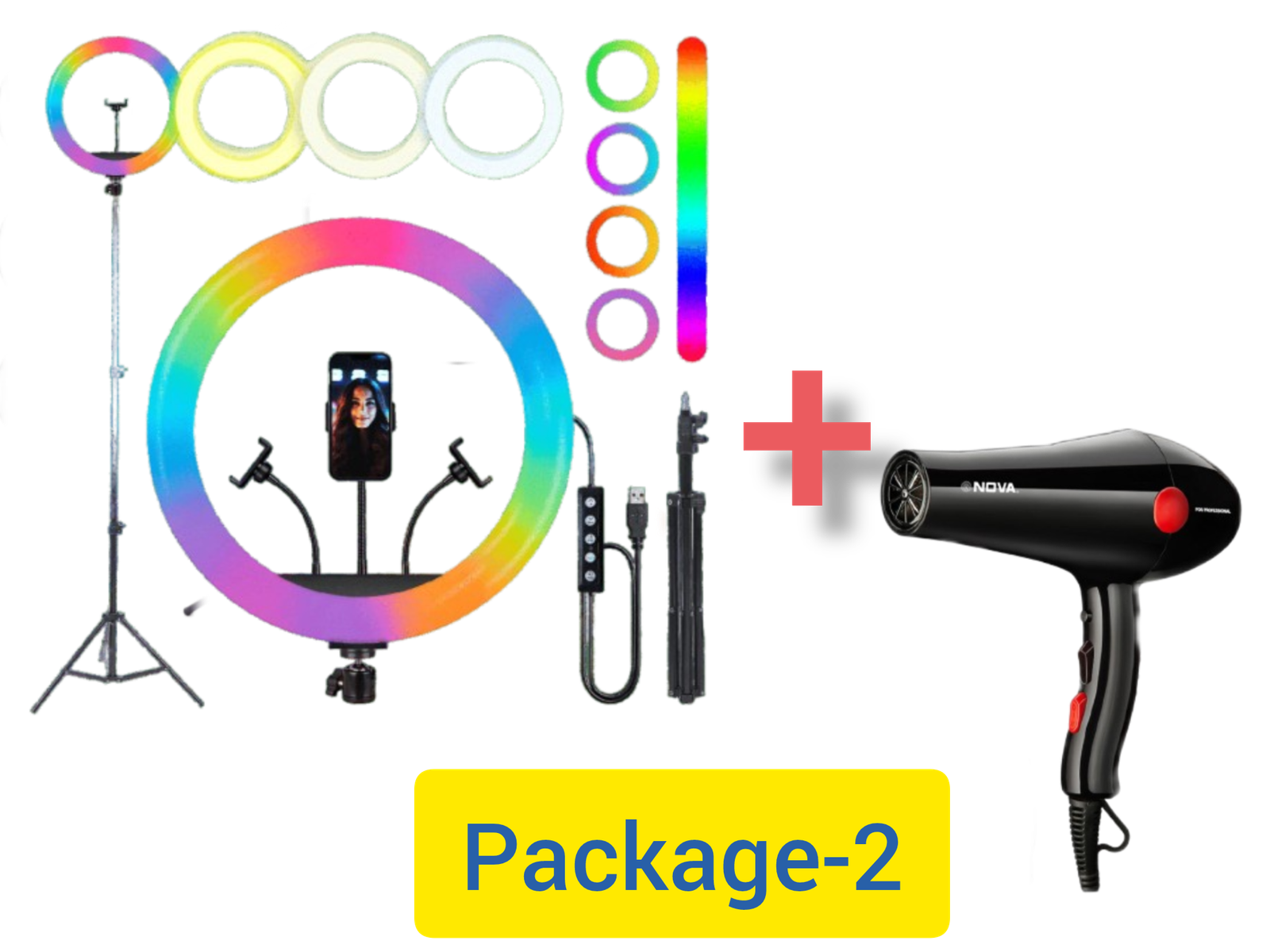 P-2=LED RING LIGHT & HAIR DRYER